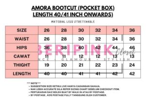| SIZE JEANS | 26, 28, 30, 32, 34, 36 |